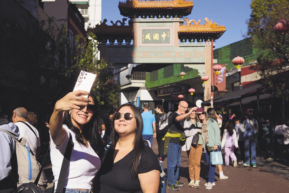 2025年5月10日,市民在阿根廷布宜诺斯艾利斯的“中国城”牌坊前自拍。 随着中国与拉美国家交流合作的不断推进,中国元素在拉美社会中日益增多,从街头的中餐馆到各类中国文化符号,从城市中穿梭的中国产汽车到疾驰的中国制造地铁……这些元素正逐步融入当地民众的日常生活,展现出中拉互动不断深化的现实图景。新华社记者 孟鼎博 摄