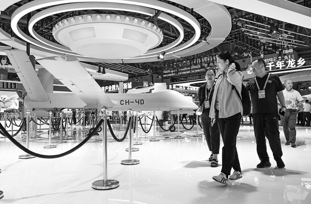 5月22日,观众在西洽会上观看一款无人机。 当日,第七届中国西部国际投资贸易洽谈会在重庆开幕,来自39个国家和地区的1300余家企业参展参会。新华社记者 陈诚 摄