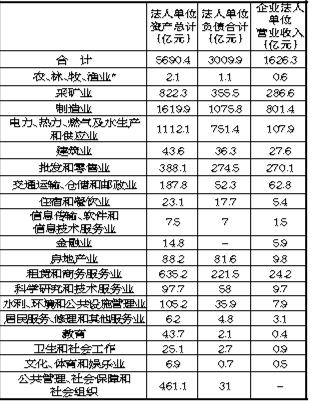 注:1.表中农、林、牧、渔业仅包括从事农、林、牧、渔专业及辅助性活动的单位数据。表中企业法人单位,包括机构类型为企业的法人单位,以及执行企业会计制度的事业法人单位、民办非企业法人单位和基金会,农民专业合作社,农村集体经济组织和除宗教活动场所以外的机构类型为其他组织机构的法人单位。表中房地产业包括房地产开发经营、物业管理、房地产中介服务、房地产租赁经营和其他房地产业。
