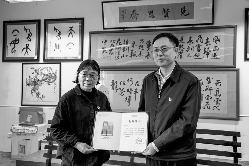 5月27日,张桂梅(左)收到国家博物馆颁发的收藏证书。 当日,一场简短的捐赠仪式在云南丽江华坪女子高中举行,“七一勋章”获得者、云南丽江华坪女高校长张桂梅收到了国家博物馆颁发的收藏证书,她日常使用的小喇叭等5件(套)见证着华坪女高办学历程的实物被国家博物馆正式收藏。 张桂梅向国家博物馆捐赠的实物包括一个她在学校日常使用的小喇叭、一张华坪女高学生写给她的教师节贺卡、一面华坪女高升旗仪式使用的国旗,以及她手抄的党章和二十大报告。它们承载着张桂梅数十年坚守边疆教育事业的奉献精神,部分实物未来会在国家博物馆相关展陈中向公众展出。 当日上午,在华坪女高的校园里,张桂梅使用新的小喇叭向学生们喊话。学生们的早操散去,张桂梅在队伍末尾缓慢地往回走。她告诉记者:“我希望通过这些物品,把我们党的精神和宗旨传承下去。我想用我最后的一些力气,把这个声音传播得能多远就多远。” 新华社记者 胡超 摄