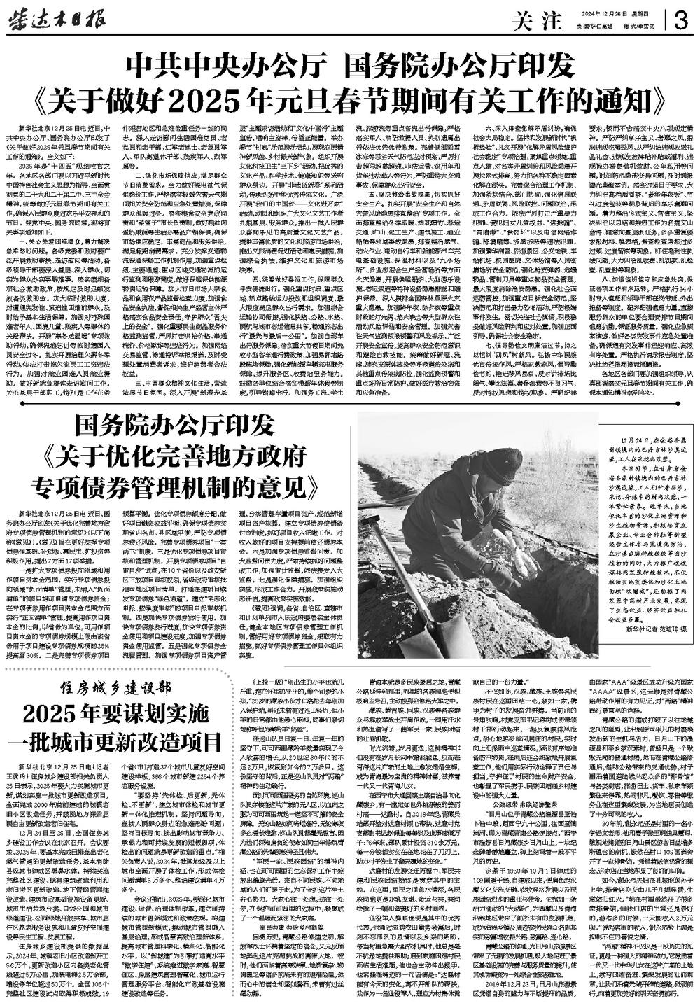 中共中央办公厅 国务院办公厅印发 《关于做好2025年元旦春节期间有关工作的通知》