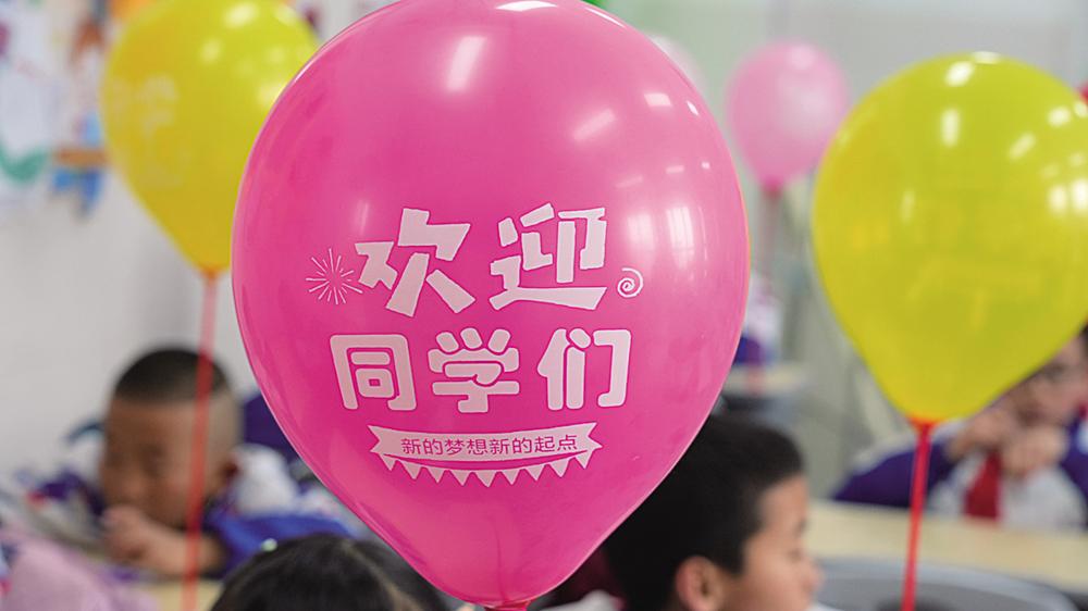 在四年级三班,每个同学的桌子上整整齐齐地摆放着被绑上漂亮拉花的新课本,旁边是一个个彩色的气球,上面写着“我们开学啦!”“欢迎同学们”的字样,这是赛日古力老师给学生的开学礼物。在“开学第一课”,赛日古力老师还让每一位学生都摘到了属于自己的“棒棒糖”。老师通过讲授电影《热辣滚烫》中主角乐莹逆袭的故事,告诉学生们如何做好自律、做到坚持、完成目标。学生们端坐在位置上,认真且坚定,从他们眼睛中可以看到,老师的每句话都落在了他们的心坎里,鼓舞着他们。都兰县第一小学四年级三班班主任赛日古力说:“为了让孩子们圆满地结束这个假期,我特意布置了一下教室,给他们一个开学的仪式感,让他们开开心心地度过这一天,明天开始收心,好好学习,黑板上的棒棒糖,是希望他们吃最甜的糖,做最棒的自己。”