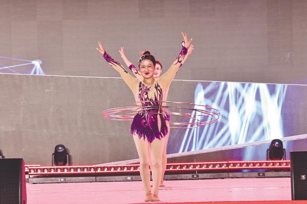 首先上场的是《漫天飞舞》转碟表演,演员们用一根长约一米、厚如铅笔的杆子在盘子底部摇晃旋转,让盘子看起来像立在风中的荷叶,《奇妙世界》带来刺激精彩的“人体两分”魔术表演,在观众代表确认铁皮箱子没问题的情况下,男魔术师对装有女演员的铁皮箱子插入数把剑并分成了两半,当在场观众还在惊恐时,女演员面带微笑地从铁皮箱子里走了出来,为现场观众带来了神奇的视觉享受;《太极·坛韵》以水墨画作为演出背景,将太极文化与杂技表演相融合,“小坛砸脖三节后空翻”“双坛后空翻上肩”“双人过缸口”“移形换位”等一系列高难度技巧动作,形成了震撼的视觉冲击力,给观众带来了一场“惊、险、奇、美”的精彩表演,让观众惊叹不已、掌声连连。还有《野蜂飞舞——捷克棒》《炫彩世界——晃圈》《担当——群体技巧》等节目轮番上演,将演出逐渐推向高潮。