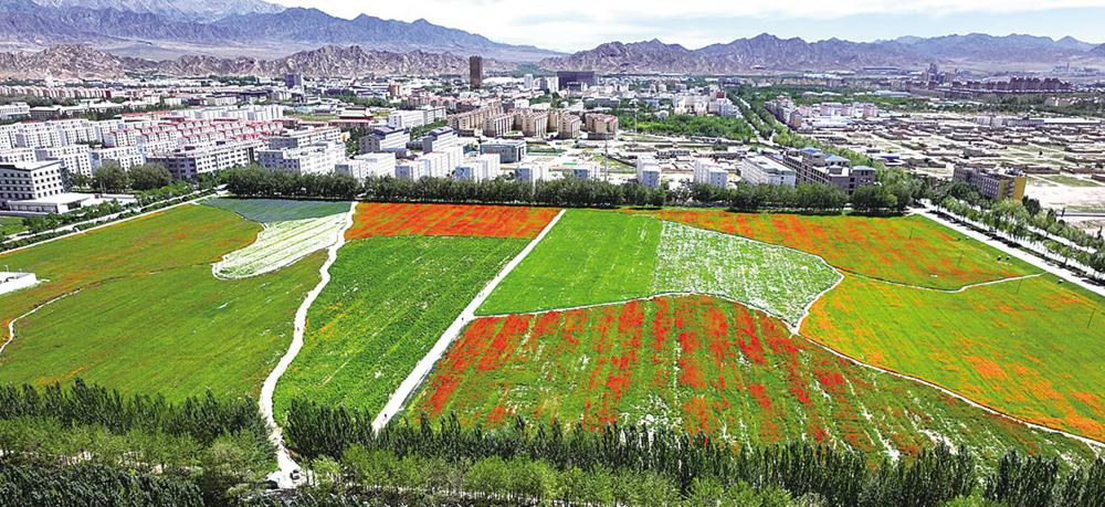 近日,记者在德令哈市环城西路的“花海”看到,各种鲜花争奇斗艳地开放,绚烂夺目,红的似火、白的像雪、黄的如金,交相辉映,为城市增添了一份淡雅与宁静。吸引了众多游客和市民前往观赏拍照。 本报记者 张萍 摄影报道