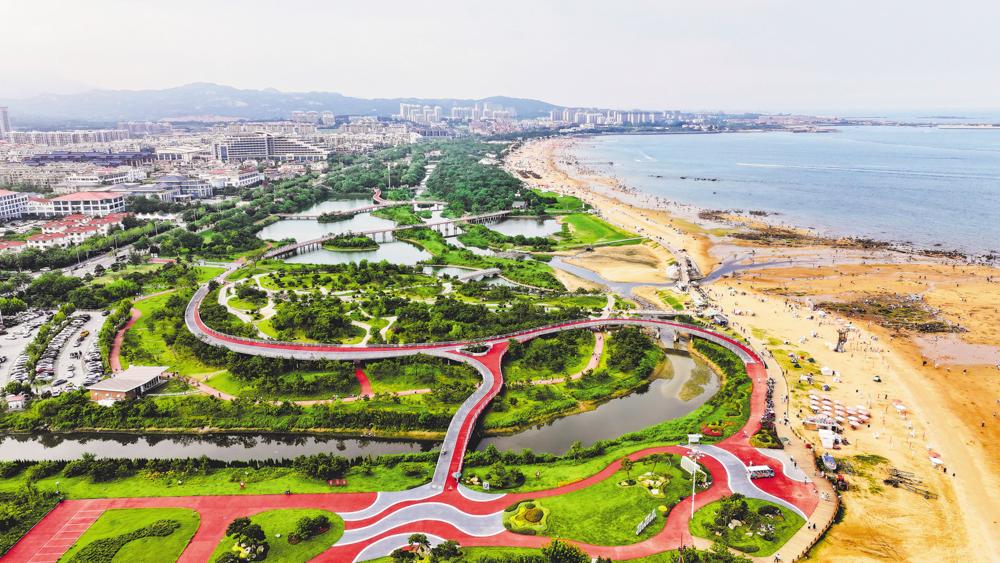 8月8日航拍的日照市阳光海岸绿道(无人机照片)。近年来,日照市对沿海裸露场地及岸线破损处进行生态修复,建成约28公里的阳光海岸绿道,为市民和游客提供了运动休闲好去处。 山东省近年来持续开展海洋生态修复、“蓝色海湾”整治行动等工作,加强海岸线、海洋保护地和滨海湿地生态保护,完成渤海攻坚海洋生态修复任务。通过修复整治生态岸线项目,还城市一条“蓝腰带”;配套建设城市书房、海洋美学馆等文化设施,还市民亲海、休闲空间,让海滨城市飘扬起生态“绿丝带”。 新华社记者 郭绪雷 摄