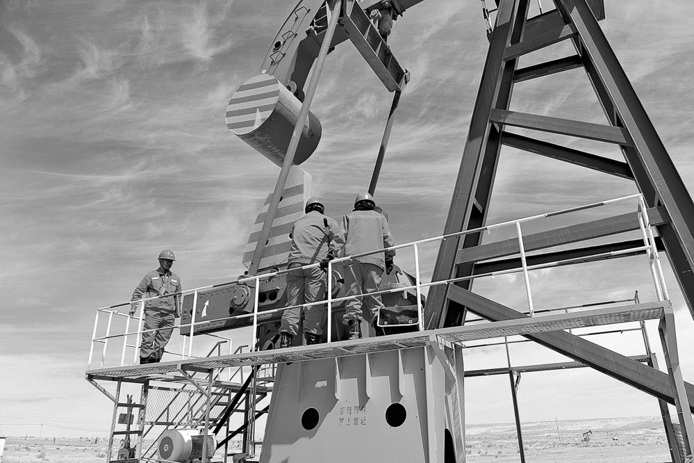 “瞧,正在比赛呢!”上车没走多远,就看到几个人顶着烈日围在一起讨论着什么,身后的油井上,挂着“采油二厂第二十四届技术技能竞赛”的横幅。担心影响比赛,我们把车停在一旁,想等比赛间隙,跟何师傅聊上几句。