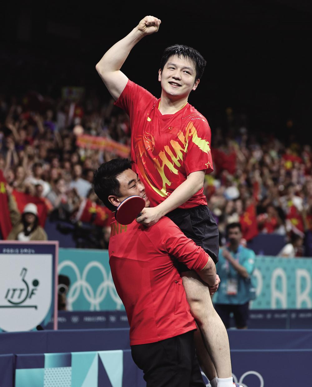 中国乒乓球队顶住世界强手的挑战,首次包揽5金。“团结的力量无限大”激励他们前行,第四次参加奥运会的马龙收获个人第六金,樊振东实现“大满贯”的梦想,陈梦女单成功卫冕,孙颖莎、王楚钦、王曼昱展现青春风采……“祖国和人民的支持,让我们在赛场上拼搏更有底气。”马龙说。