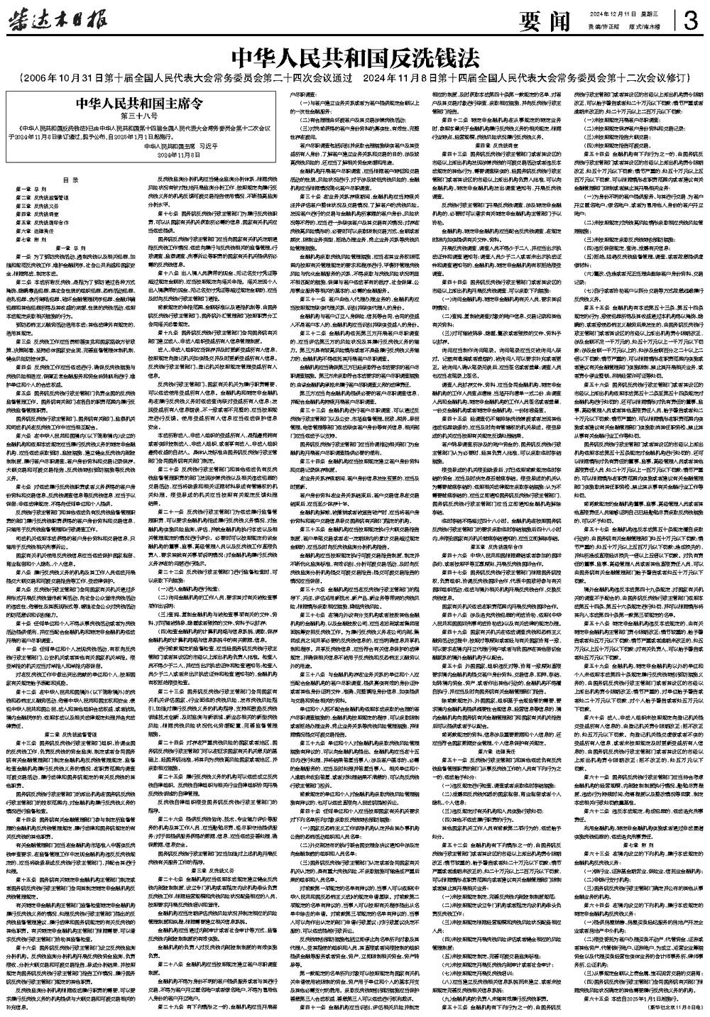《中华人民共和国反洗钱法》已由中华人民共和国第十四届全国人民代表大会常务委员会第十二次会议于2024年11月8日修订通过,现予公布,自2025年1月1日起施行。