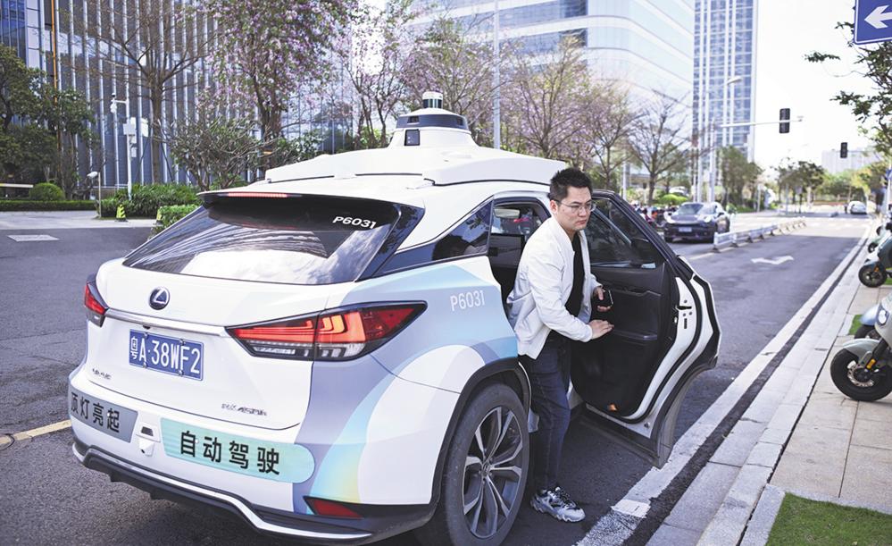 3月11日,在广州南沙区,搭乘小马智行自动驾驶无人商业化出租车的乘客到达目的地后下车。 近日,总部位于广州的自动驾驶公司小马智行开通了4条自动驾驶示范运营专线,市民可在城市中心搭乘自动驾驶车往返广州白云机场和广州南站。 据统计,截至今年1月,广州已累计开放1298条智能网联汽车测试道路和10条高快速测试道路。目前,自动驾驶网约车、无人巴士、干线物流以及无人配送等多场景示范应用正在有序开展。据相关行业机构预测,到2030年,中国自动驾驶网约车或将占到共享出行市场一半以上,市场规模预计超过1.3万亿元。 新华社记者 邓华 摄