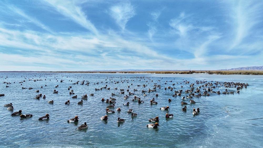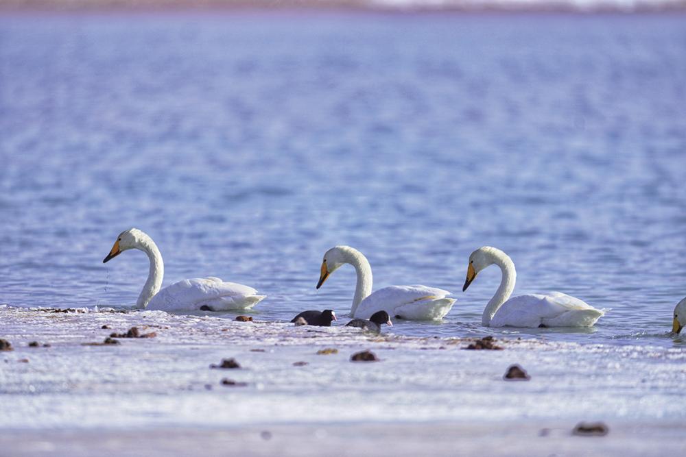 初春,德令哈市可鲁克湖珍稀水禽组团“打卡”。本报记者 浩尔娃 摄