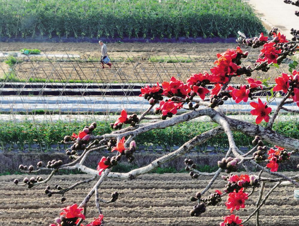 3月16日,村民在广西南宁市江南区江西镇的田园里劳作(无人机照片)。 各地春花陆续绽放,神州大地处处都是烂漫春景。新华社记者 周华 摄