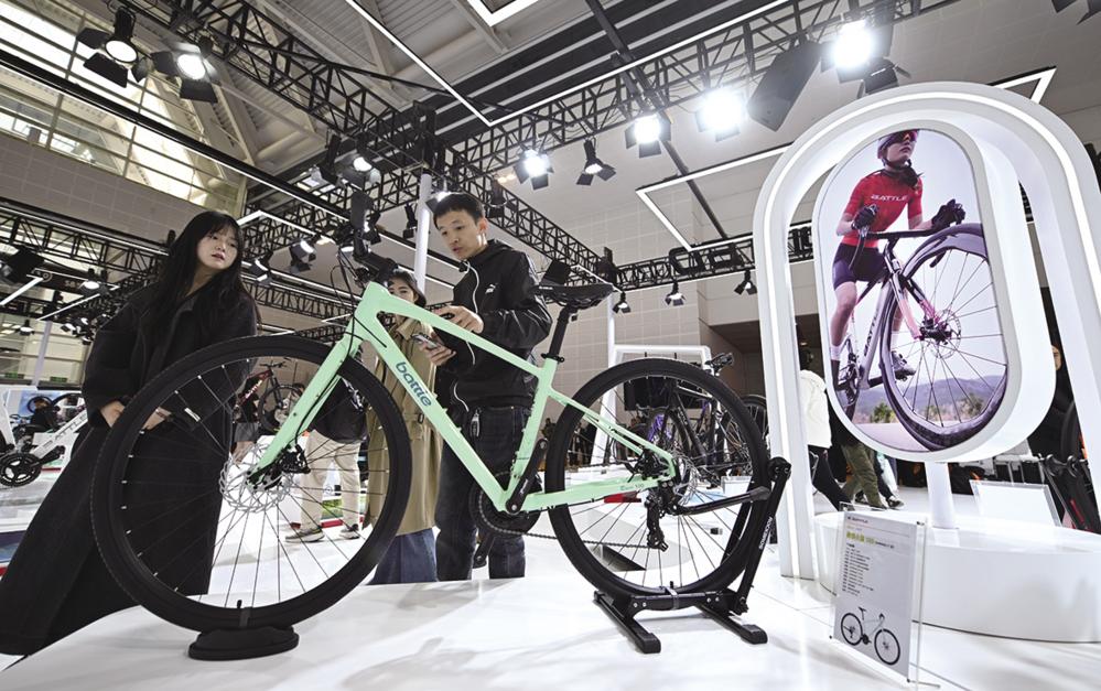 3月28日,观众参观展出的自行车。 当日,第二十三届中国北方国际自行车电动车展览会在国家会展中心(天津)开幕。本届展会以“新质、绿色、时尚、安全”为主题,超过800家参展单位围绕行业科技创新、国际合作交流、骑行文化推广以及以旧换新政策带来一批行业新成果和新产品,总展出面积达10万平方米,展会将持续至3月30日。 新华社记者 赵子硕 摄