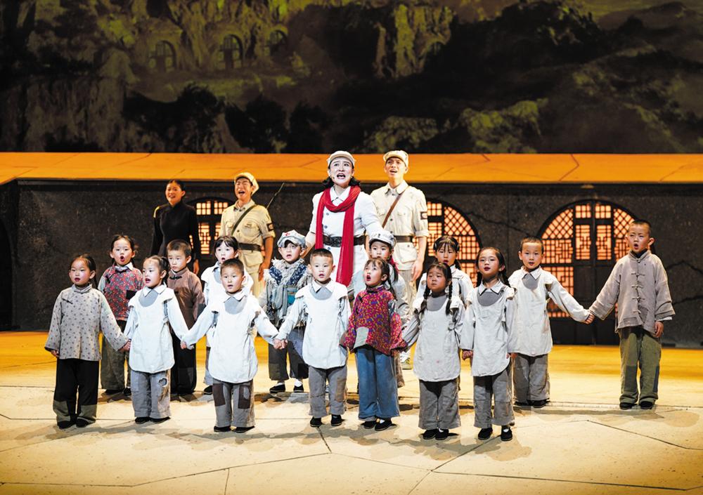 7月29日,演员在延安保育院剧场表演红色舞台剧《延安保育院》。 近年来,陕西省延安市以“传承红色基因”为目标,采用新科技、新理念、新手段,推出多部高质量剧目。生动感人的故事情节、富有冲击力的视听效果、沉浸式的观赏体验——守正创新的表达方式让红色文化“活起来”。 新华社记者 樊雨晴 摄