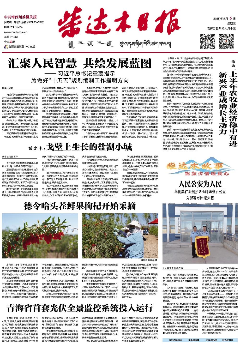 据了解,海西州持续优化种植结构,提升单产水平,大力推广先进技术,上半年种植业产值同比增长8.1%。今年该州积极落实耕地保护补贴政策,发放补贴4146.4万元,有效激发农民种植积极性,推动特色作物种植规模快速扩张,其中藜麦种植面积突破0.64万公顷,同比激增86%;枸杞种植面积稳定在2.91万公顷,预计干果产量达10万吨;油料、饲草种植面积分别达0.76万公顷、1.12万公顷,同比增长27.8%和41.5%,为农牧业经济增长奠定坚实基础。