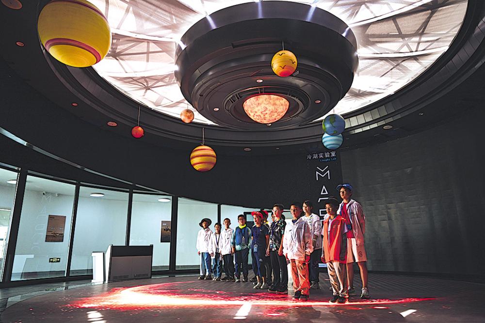 7月29日,参加暑期研学的小朋友在冷湖镇“冷湖实验室”学习天文知识。新华社记者 张龙 摄
