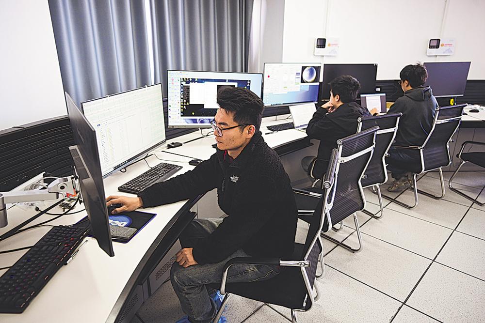 7月29日,由中国科学院国家天文台实施的用于太阳磁场精确测量的中红外观测系统AIMS项目科研人员在工作。新华社记者 张龙 摄