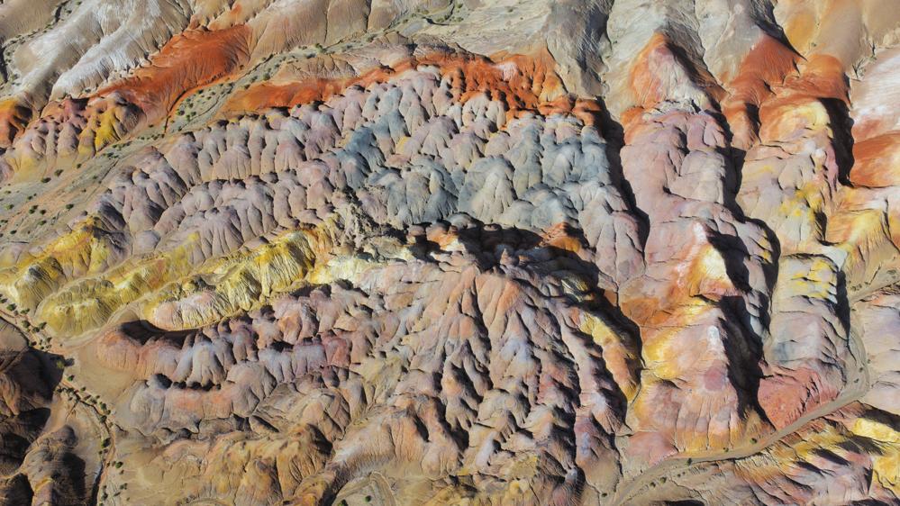 “都兰彩虹雅丹”景区核心区域坐落于怀诺公路至宗加镇74公里段东侧约900米位置,平均海拔达2900米,总面积约50平方公里,其独特景观形成于约2亿年前的侏罗纪时期。地层由古老的河流、湖泊、泥炭沼泽相沉积物构成,历经多次地质运动,在大型断裂带附近形成高角度倾斜状,最终形成了这片地貌奇特、色彩绚丽、层次分明的丹霞景观,尤其在峡谷与山坡地带,视觉冲击力极强,自被发现以来便吸引了大量网友与摄影爱好者前来打卡拍照。