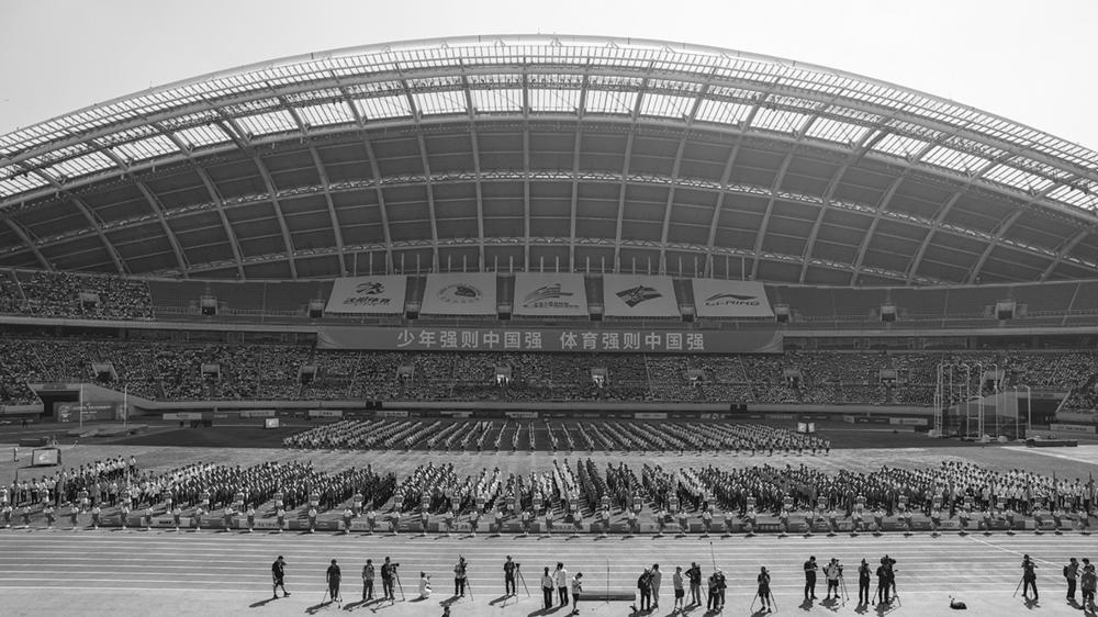 这是8月10日拍摄的开幕式现场。 当日,第一届全国青少年田径运动会在辽宁省沈阳市开幕。赛事设置56个比赛项目,来自全国29个省(区、市)、新疆生产建设兵团和香港、澳门特别行政区的1100多名青少年运动员参赛。新华社记者 潘昱龙 摄