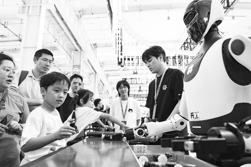 在世界机器人大会展馆内,观众与天工机器人进行零件分拣互动(8月8日摄)。 2025世界机器人大会8月8日至12日在北京亦庄举行,大会设置的创新馆、应用馆、技术馆,汇聚了国内外200余家机器人企业的1500余件展品,其中有50家人形机器人整机企业带来最新展品及行业解决方案。在展馆现场,观众可看到从医疗服务到工业生产再到生活服务,涉及生活方方面面的各类机器人产品,感受机器人“点亮”你我未来生活的无限可能。 新华社记者 谢晗 摄