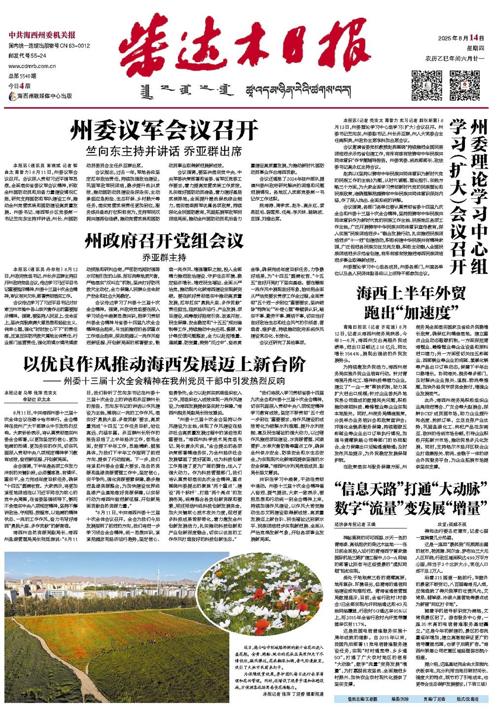 8月11日,中共海西州委十三届十次全体会议在德令哈市举行。全会精神在我州广大干部群众中引发热烈反响。大家纷纷表示,将认真贯彻落实州委全会部署,以更加坚定的信心、更加饱满的热情、更加务实的作风,切实巩固深入贯彻中央八项规定精神学习教育成效,奋进新征程、开创新局面。