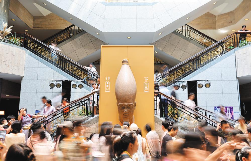 8月17日,观众走在上海博物馆人民广场馆中央大厅内。 当日,持续13个月的“金字塔之巅:古埃及文明大展”在上海博物馆人民广场馆落下帷幕。展览自2024年7月19日正式向公众开放以来,接待观众超277万人次。 据悉,展览分为“法老的国度”“萨卡拉的秘密”“图坦卡蒙的时代”三个版块,汇集788件古埃及不同时期的珍贵文物,其中多数文物是首次来到亚洲。 新华社记者 方喆 摄