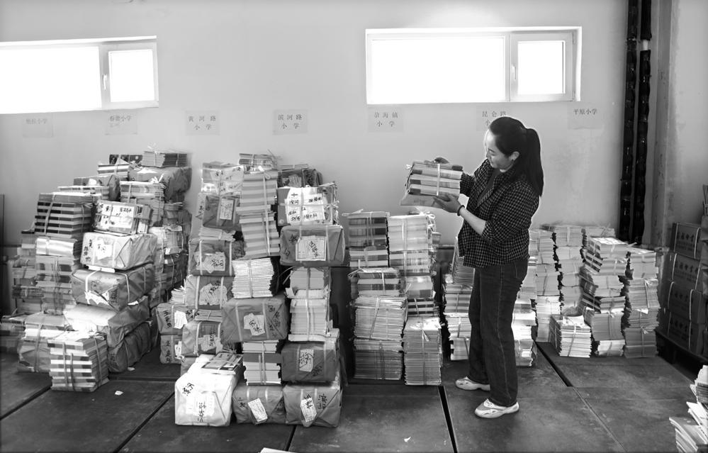 8月21日,记者在新华书店看到,工作人员正在仓库清点教材。临近开学,海西州多地新华书店开始做好教材和教辅资料的清点、搬运、分发等工作,为开学做好准备。本报记者 查宝音 摄影报道