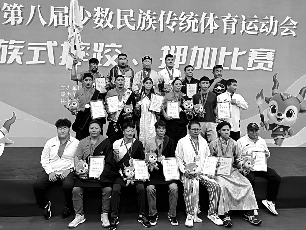 ↑8月14日至19日,青海省第八届少数民族传统体育运动会民族式摔跤比赛在黄南州河南县民族体育馆激情上演。来自海西州、果洛州、海北州等11支代表队的113名运动员齐聚赛场,展开激烈角逐。海西州代表队以精湛技艺和顽强拼搏精神,斩获5项第一名、5项第二名、4项第三名的优异成绩,成为赛场瞩目的焦点。 本报记者 查宝音 摄影报道