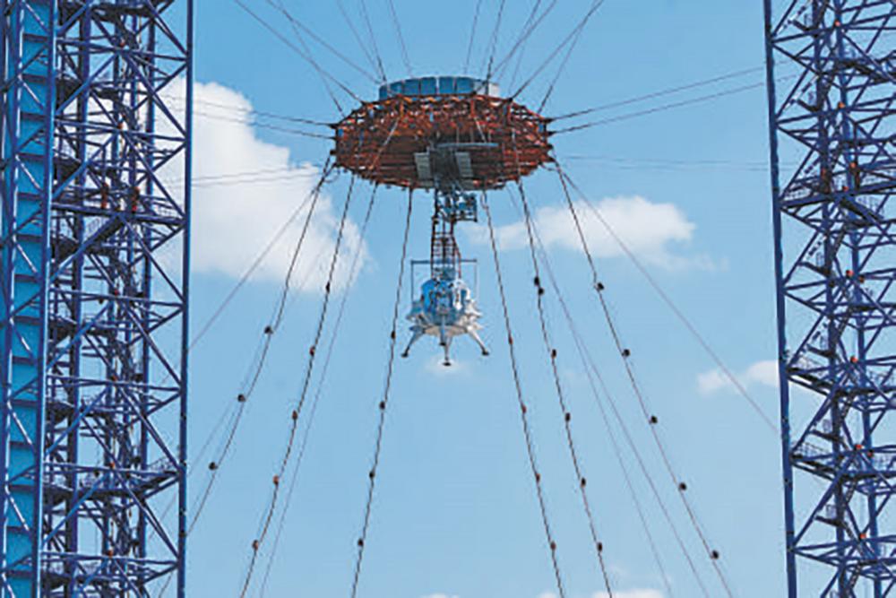 图②我国揽月月面着陆器在进行测试。