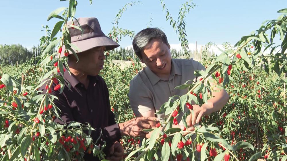 燕国胜全方位指导农户种植枸杞。(右为燕国胜)