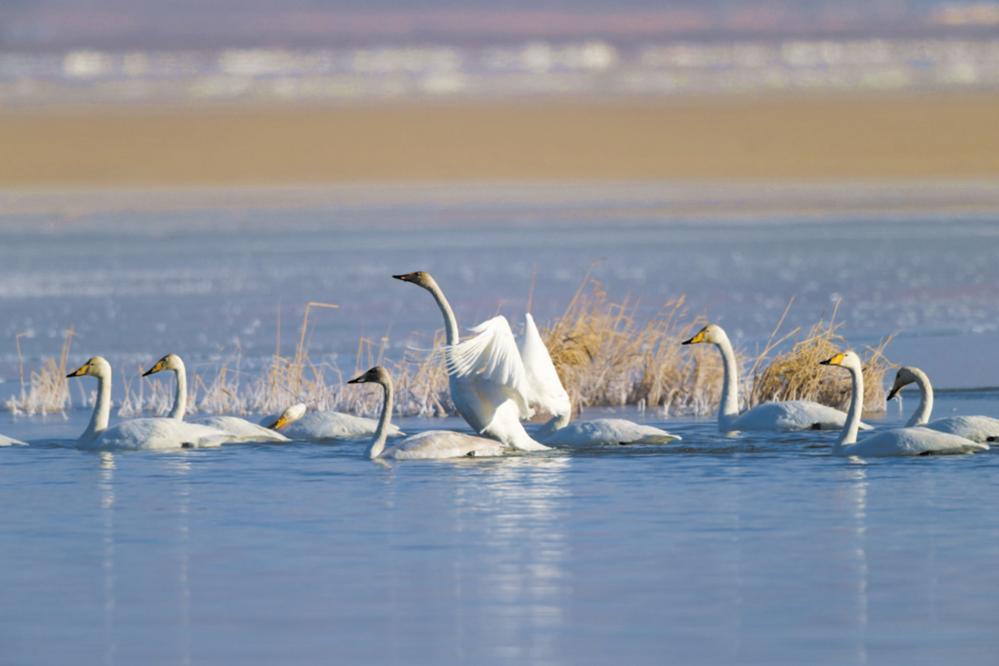 我试着照他说的,去数湖面上剩下的大天鹅、普通秋沙鸭、小白额雁,慢慢竟也跟上了节奏。说起来,聚焦生态报道这些年,青海的野生动物大多能认个脸熟,可一到鸟类就犯了难。全省记录在册的鸟有532种,我能叫上名字的,两只手数得过来。这次出来,算是补上一堂重要的课。