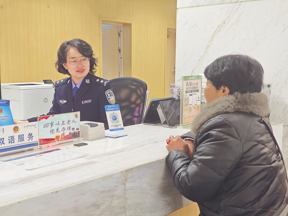 “让来办事的老百姓少跑一趟路。”这是海西州公安局出入境管理支队辅警应守风坚守十年的服务宗旨。十年来,在窗口岗位上,她重复着收材料、办证件、解疑问的工作,也见证了无数期盼的眼神——求学少年的远方憧憬、探亲老人的思亲之情、创业群众的干事热忱……这些信任,化作了她肩上沉甸甸的责任。这个警察节,应守风的心愿很实在:盼着群众办证都顺顺利利,不用跑冤枉路;盼着“绿色通道”更贴心,让老人、残疾人等特殊群体办事更省心、更暖心。新的一年,她要吃透新政策,细化绿色通道流程,制作清晰指引卡,把自己的工作技巧分享给同事,让窗口服务多添几分温度。