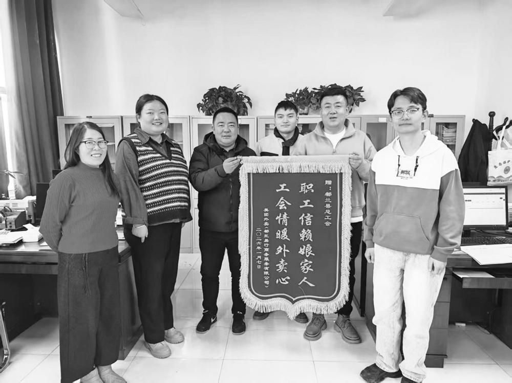 本报讯(记者 孙丹丹 通讯员 阿荣) 新年伊始,都兰县市政设施运行服务中心及美团、快递行业相关负责人代表,将四面饱含深情的锦旗送到县总工会。锦旗上滚烫的金字,不仅凝聚着环卫工人、外卖骑手、快递员等一线劳动者的深切谢意,更见证了工会“娘家人”始终如一的暖心守护。
