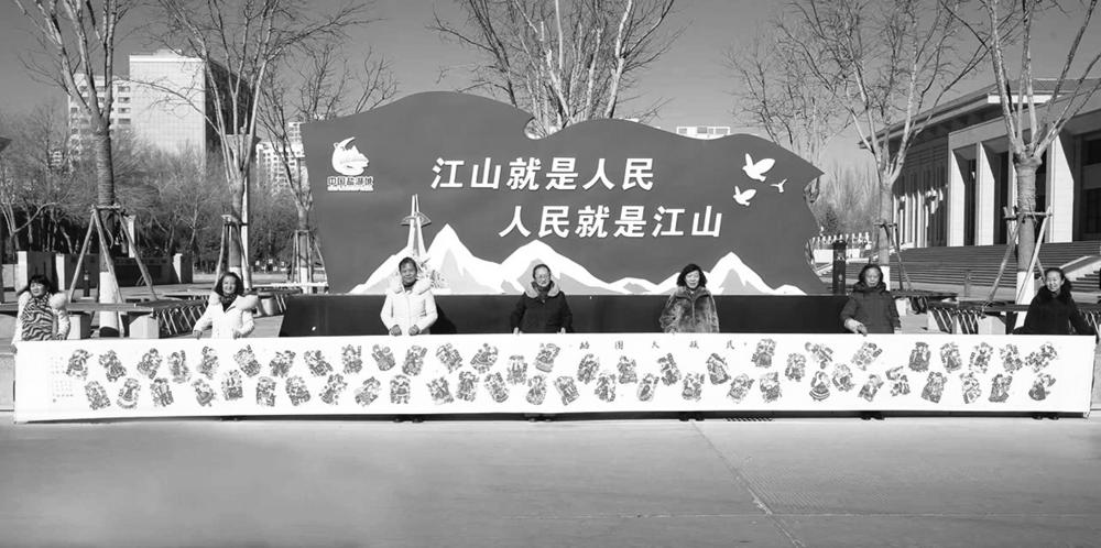 1月7日,在格尔木市中心广场,格尔木市级非物质文化遗产剪纸传承人郑苓带领剪纸爱好者,向市民展示了56个民族载歌载舞热闹场面的11米长卷剪纸作品,展现了各族人民团结奋进、永远跟党走的精神风貌。作品中的人物形象生动,穿戴着独特的民族服饰、配饰,每个纹样都藏着非遗的温度,构成了惟妙惟肖的艺术品。 本报记者 查宝音 通讯员 谢跃栓 摄影报道