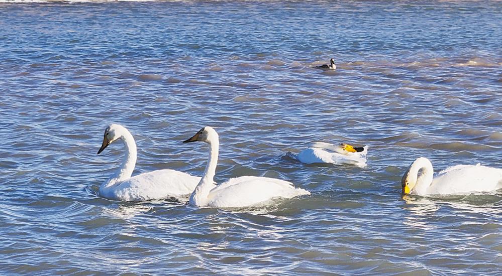深冬时节,寒风料峭,笔者深入察尔汗盐湖百里水景线湿地观察冬候鸟迁徙情况,水景线内一群“白色精灵”焕发别样生机。沿水天一色的廊道探访,只见澄澈湖面之上,数只大天鹅或悠然游弋,或低头觅食,或振翅盘旋,洁白羽翼与粼粼波光相映成趣,构成一幅冬日生态画卷。通讯员 张丹丹 仁增加措 摄影报道
