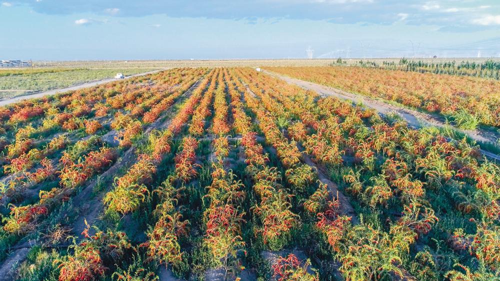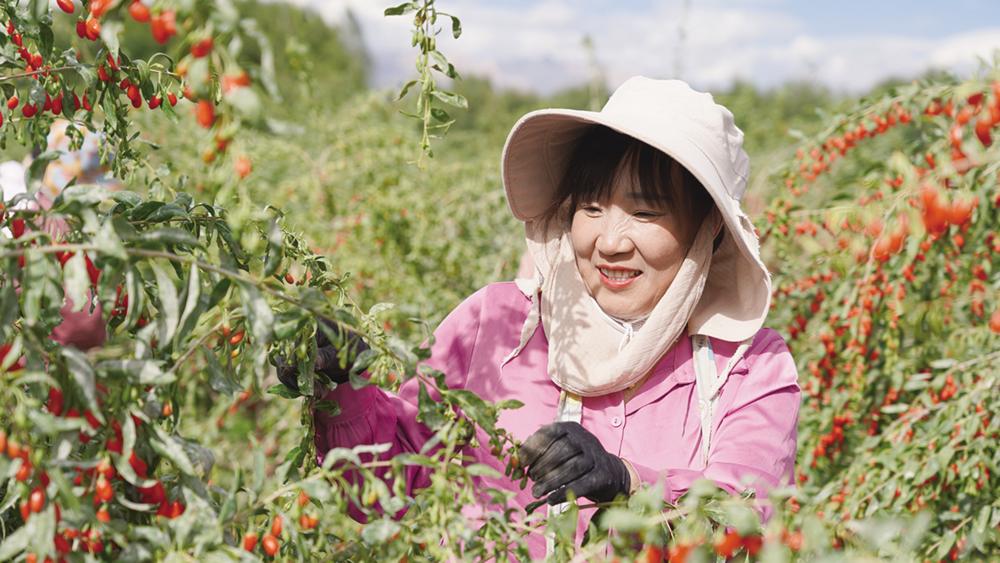 产业发展产生了显著的社会效益,带动3.2万农牧户参与企业、合作社生产经营,每年吸引省内外10万余人参与枸杞采摘等相关工作,人均年增收超1.25万元,实现了“荒漠绿、枸杞红、农民富”的美好愿景。