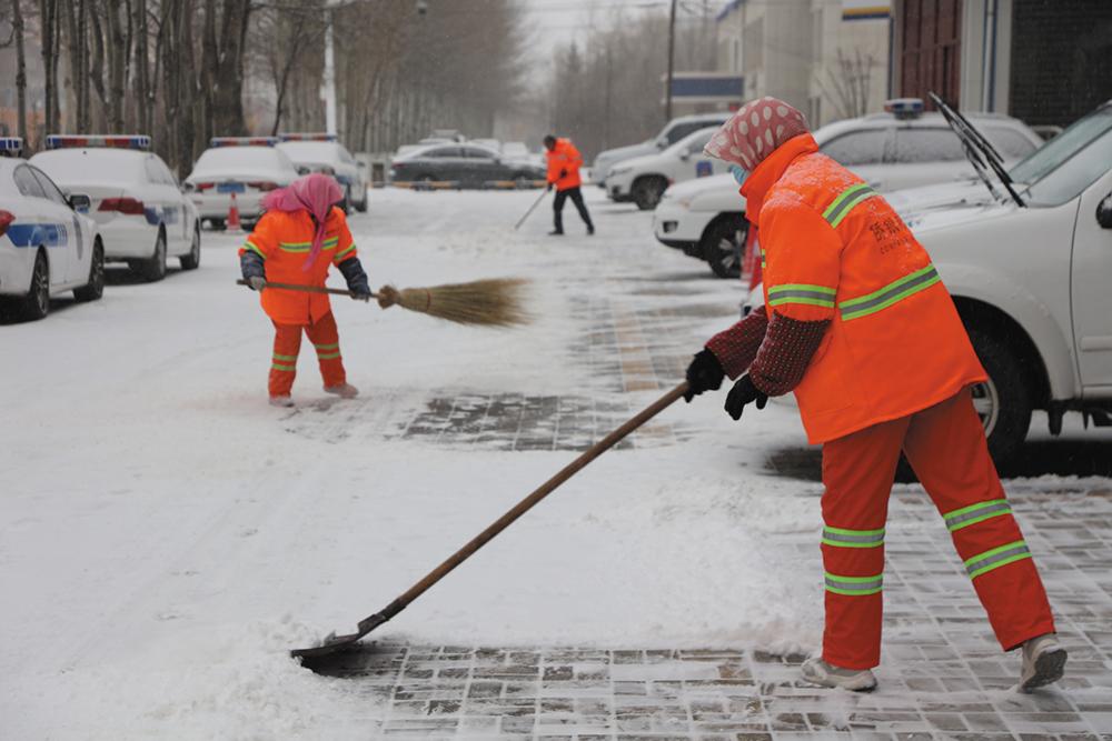 1月29日,受冷空气影响,海西州多地出现降雪天气。德令哈市公安交警、德令哈市侨银环卫有限公司快速反应,立即启动除雪保畅应急响应,调拨打冰除雪车辆,组织人员持续开展除雪作业。本报记者 查宝音 摄影报道