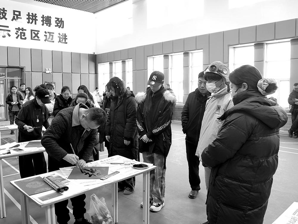 1月28日,海西州文联组织6位书法家和社区书法爱好者到德令哈市工业园区、试验区管委会、祁连路社区开展写春联送祝福活动。书法家们挥毫泼墨,为大家送上饱含深情与美好祝愿的新春对联。活动现场气氛热烈、暖意融融,一副副春联将温暖和祝福传递到每一个人心中,让大家在寒冷的冬日里感受到了浓浓的春意。 本报记者 查宝音 摄影报道