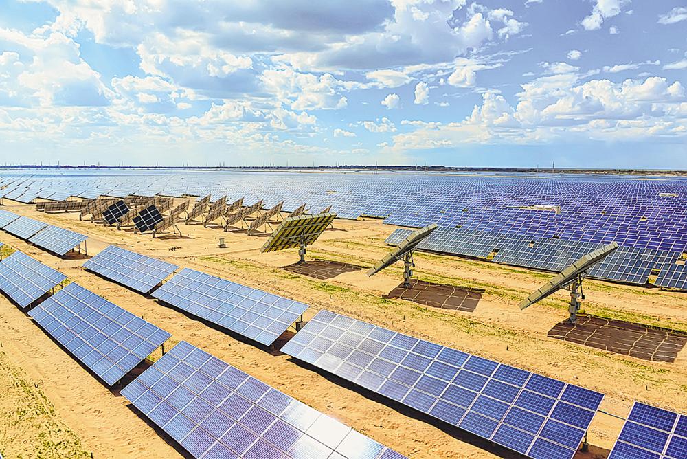 光伏产业与治沙工程的深度融合,成为格尔木生态治理的“金名片”。在中国绿发海西州多能互补集成优化国家示范工程园区,曾经飞沙走石的戈壁滩,如今已蜕变为“板上发电、板下固沙、板间植绿”的立体生态空间。光伏板像一张张“蓝色铠甲”,既遮挡烈日又减少水分蒸发,为沙生植被撑起“保护伞”,电站所发电力还能驱动提灌系统,为绿植输送生命之水。如今沿着园区道路行走,青杨挺拔、灌木丛生,连空气里都带着草木的清新。