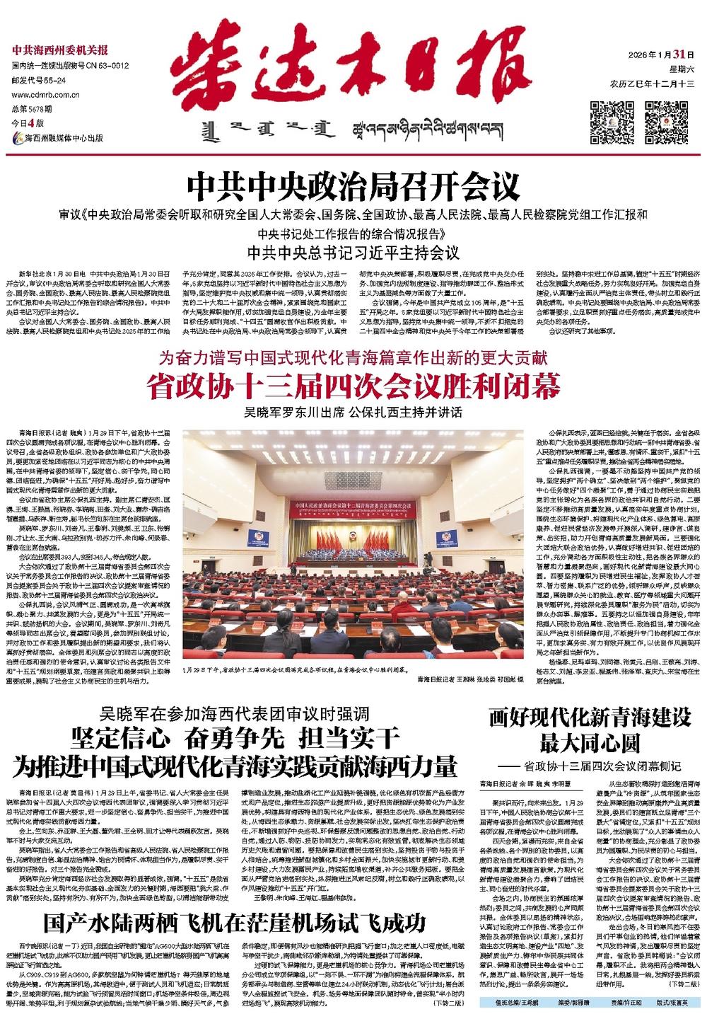 公保扎西表示,蓝图已经绘就,关键在于落实。全省各级政协和广大政协委员要把思想和行动统一到中共青海省委、省人民政府的决策部署上来,懂感恩、有情怀、重实干,紧扣“十五五”重点难点任务履职尽责,推动全省两会精神落实落地。