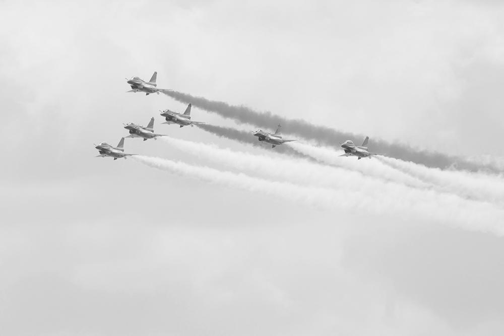 1月30日上午,中国空军八一飞行表演队在新加坡樟宜机场海面上空展开空中特技动作飞行。 应邀参加第十届新加坡航展的中国空军八一飞行表演队1月30日在新加坡樟宜机场进行适应性训练,为正式飞行表演做准备。这是表演队抵达新加坡后的首场飞行。新华社发(朱姜海 摄)