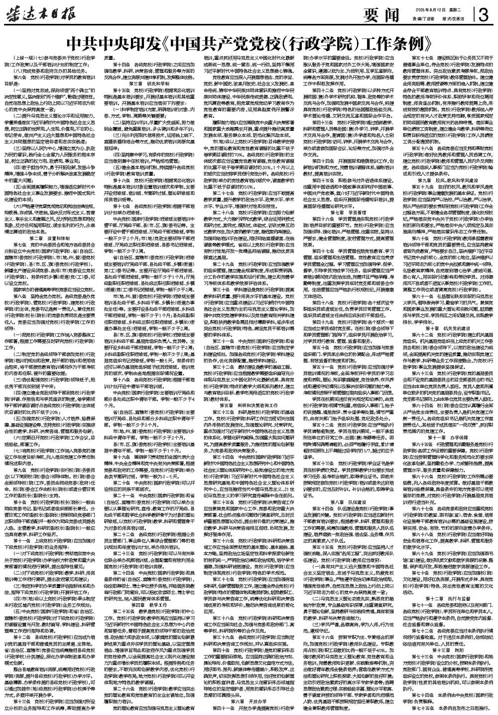 中共中央印发《中国共产党党校(行政学院)工作条例》