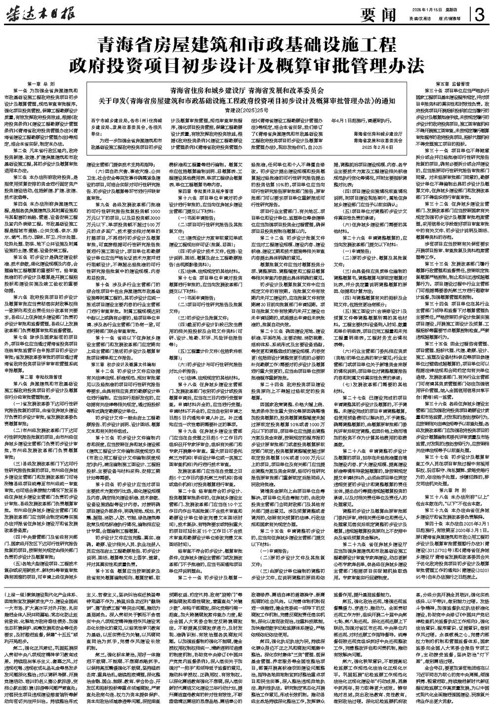 青海省房屋建筑和市政基础设施工程 政府投资项目初步设计及概算审批管理办法