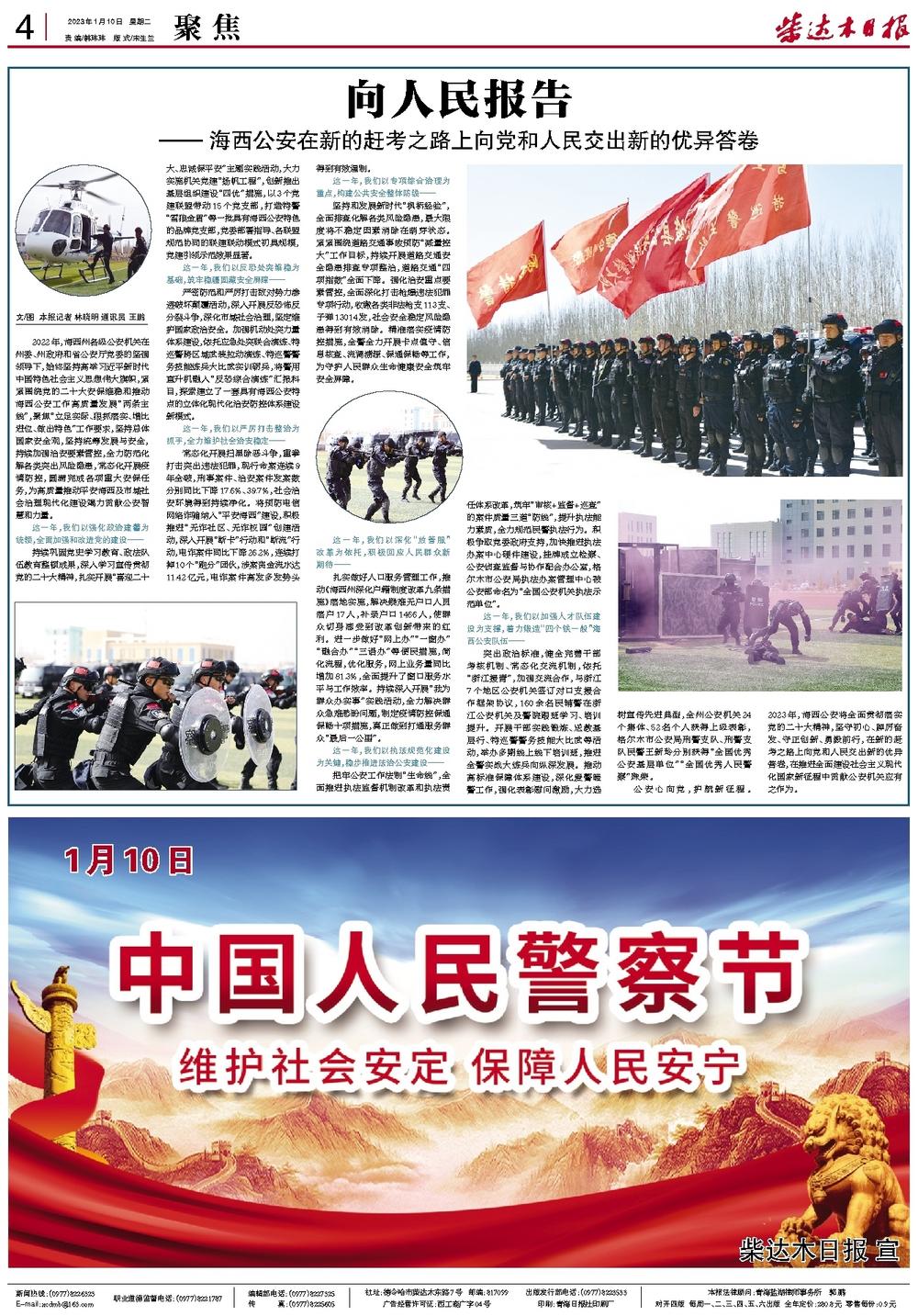 2022年,海西州各级公安机关在州委、州政府和省公安厅党委的坚强领导下,始终坚持高举习近平新时代中国特色社会主义思想伟大旗帜,紧紧围绕党的二十大安保维稳和推动海西公安工作高质量发展“两条主线”,聚焦“立足实际、狠抓落实、增比进位、做出特色”工作要求,坚持总体国家安全观,坚持统筹发展与安全,持续加强治安要素管控,全力防范化解各类突出风险隐患,常态化开展疫情防控,圆满完成各项重大安保任务,为高质量推动平安海西及市域社会治理现代化建设竭力贡献公安智慧和力量。