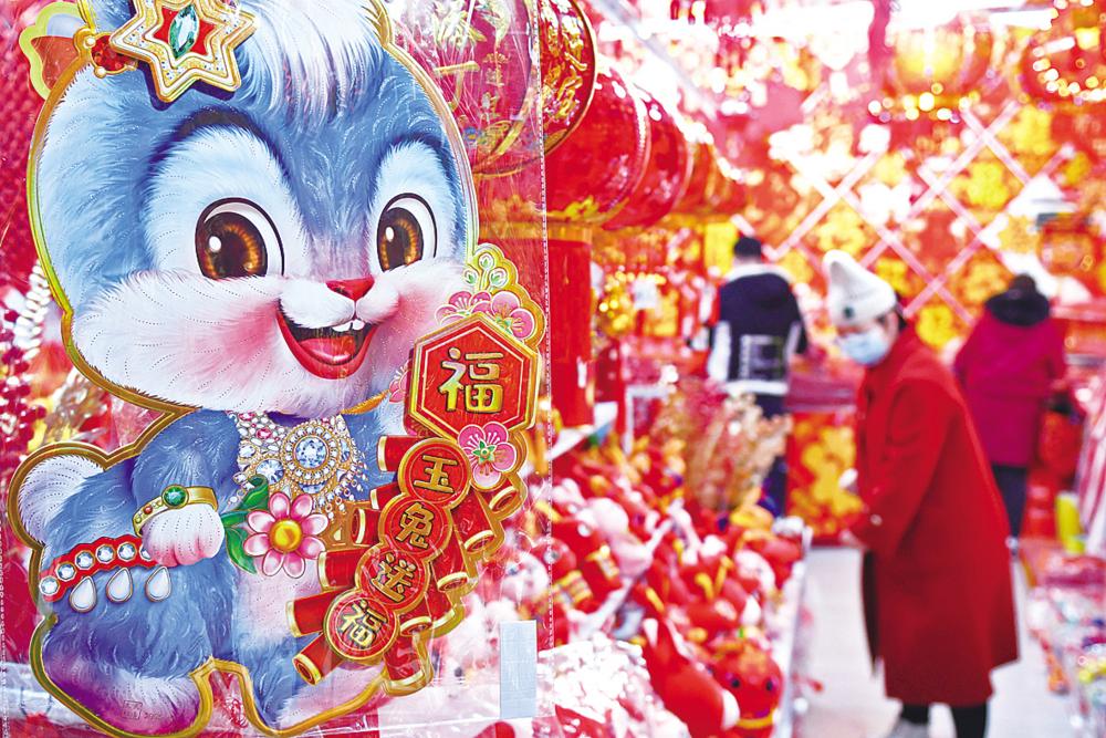 春节临近,多地年货市场红火起来,人们选购春节饰品,迎接新春佳节。