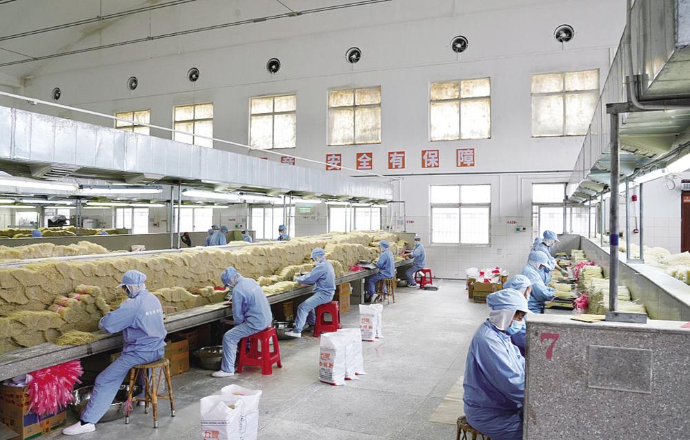 1月10日,会昌县五丰食品有限公司的工作人员在车间包装米粉(1月10日摄)。