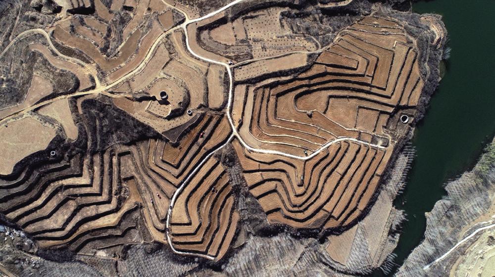 ◀ 这是3月15日拍摄的河北省石家庄市行唐县上闫庄乡中药材种植基地(无人机照片)。