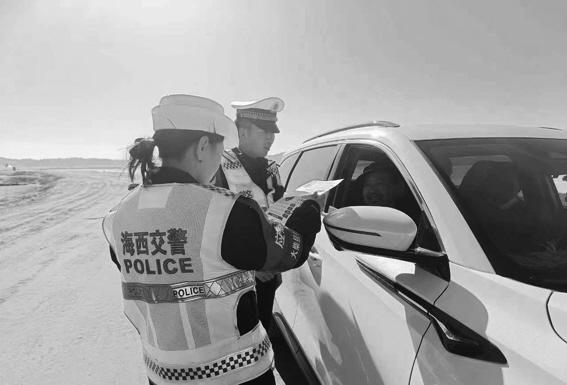 近日,大柴旦行委公安局交通管理大队走进辖区翡翠湖景区以春季守护行动为主题开展宣传活动。活动中,民警结合景区道路实际,用通俗易懂的语言对开车使用手机、危险开门习惯等常见违规行为的危害进行了深入浅出的讲解。
