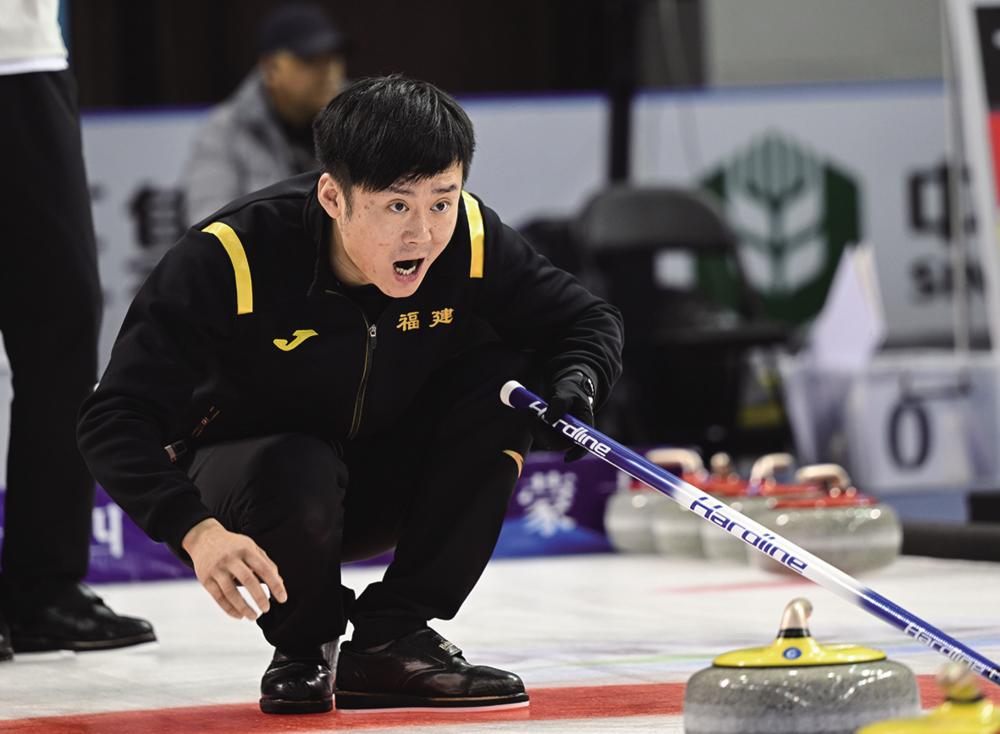 当日,在内蒙古呼伦贝尔市冰上训练中心举行的2022-2023赛季全国冰壶冠军赛男子半决赛中,福建队以5比3战胜山西队,晋级决赛。