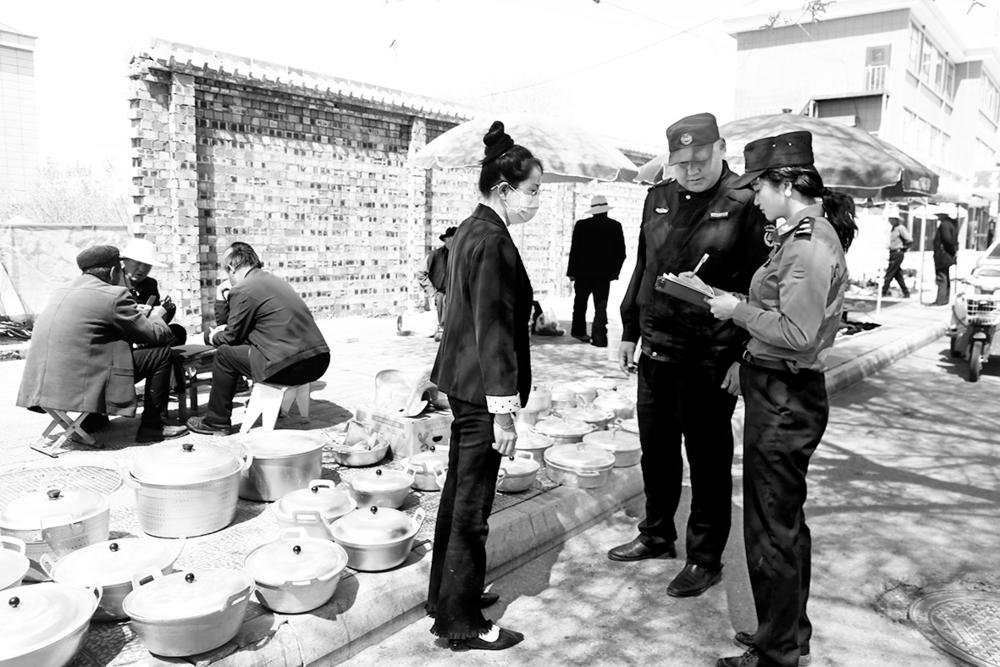 图为5月15日,乌兰县城市管理局工作人员与商户签订卫生保证书。本报记者 查宝音 摄影报道
