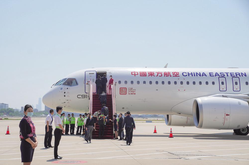 5月28日,在上海虹桥国际机场,旅客登上C919飞机。